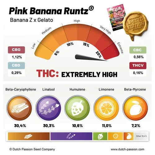Step into flavor luxury with Pink Banana Runtz Ltd Edition Feminized Seeds by Dutch Passion — a next-level, indica-dominant hybrid crafted from the legendary Banana Z (TerpHogz) x Gelato #33 lineage and selected through the elite Antonio by Dutch Passion collection.